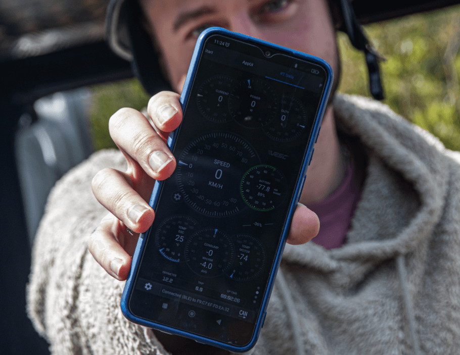 Sync your Gosmilo with App “float control: vesc companion” or “floaty: vesc stats&tuning” or “VESC tool” to check your board riding status.